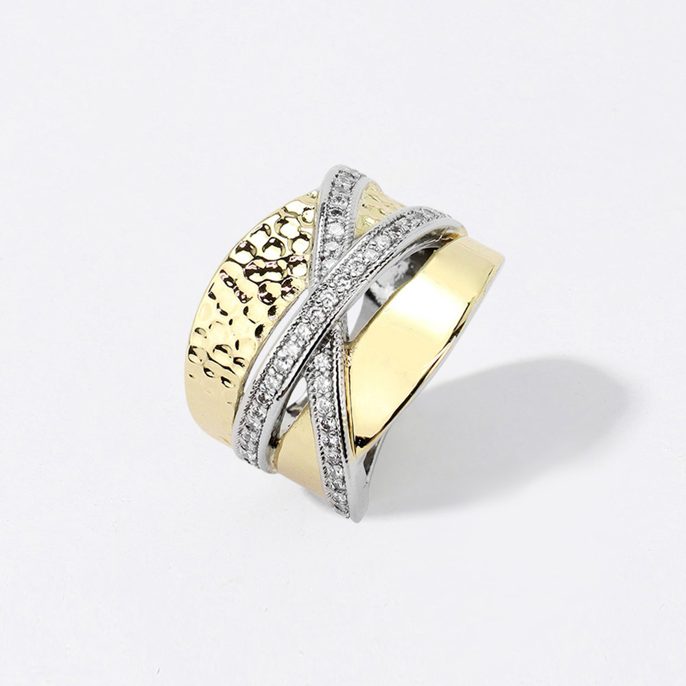 CZ Stone Embellished Two Tone Crisscross Accent Eternity Band Ring