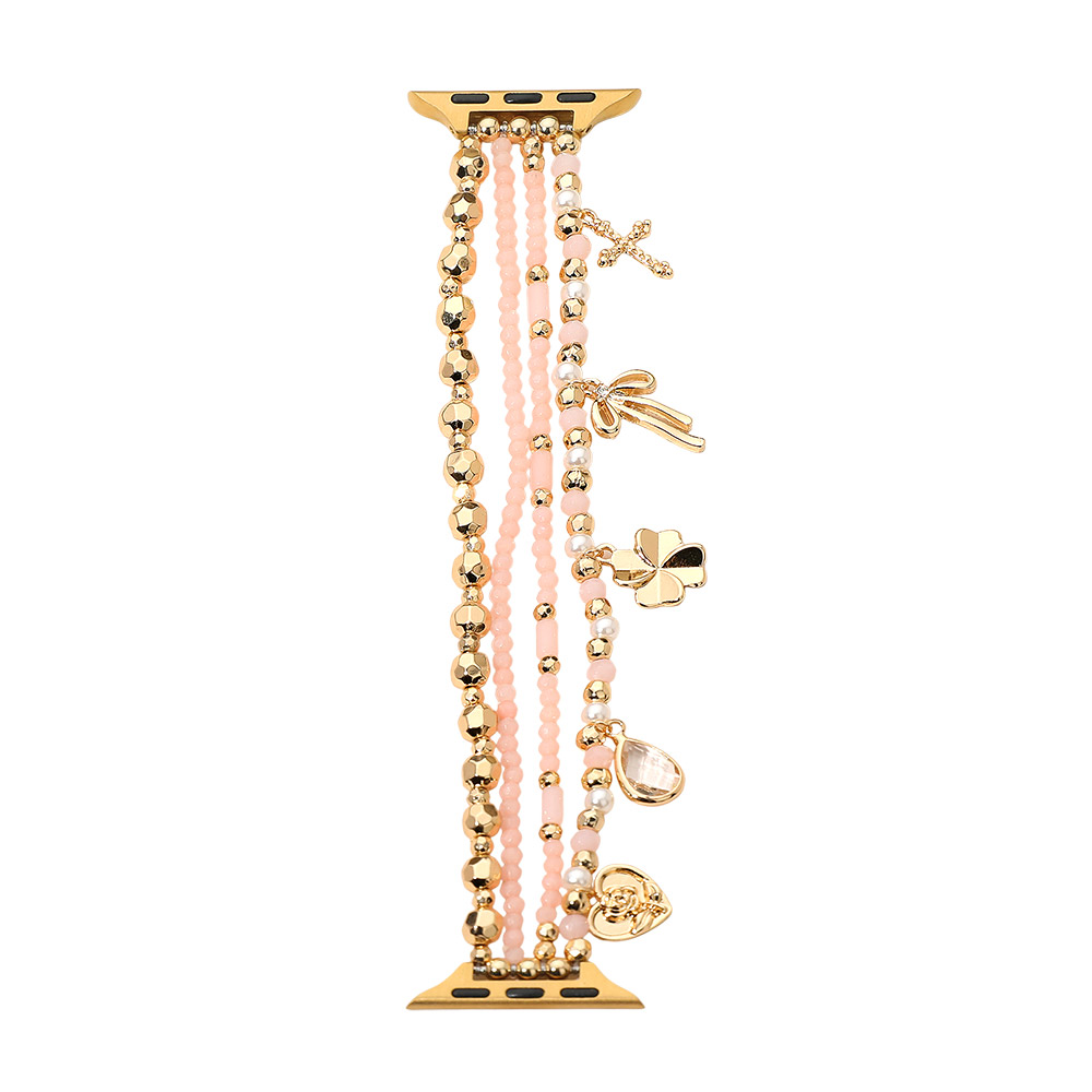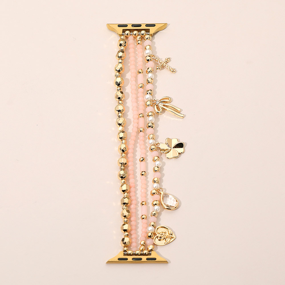 Bow Clover Heart Cross Charm Dangle Floral Ceramic Ball Pearl Beaded Multi Layered Apple Watch Band