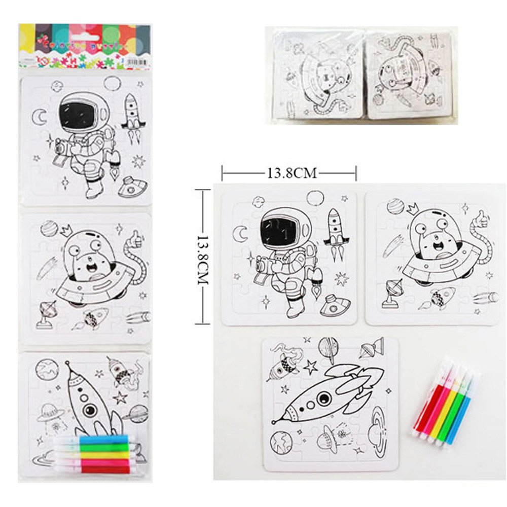 12 Set of 3 - Cute Astronaut Rocket Alien Coloring Puzzle Pen Sets