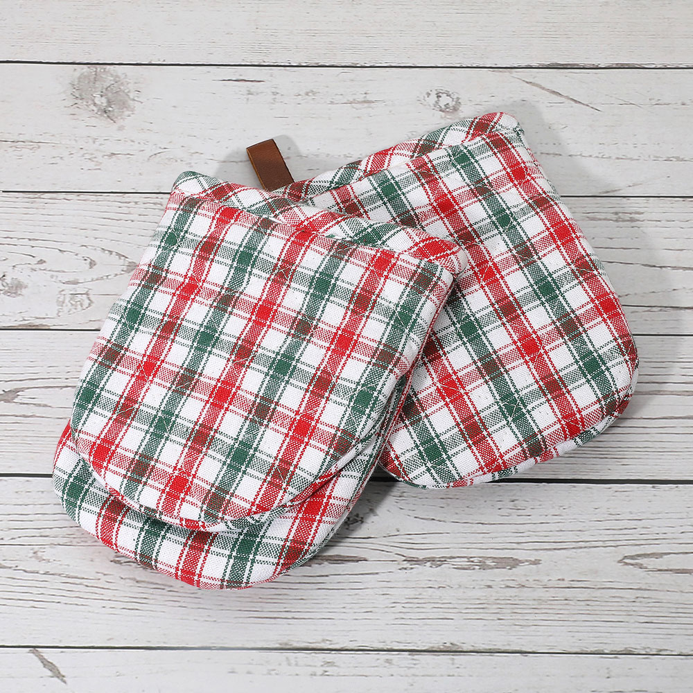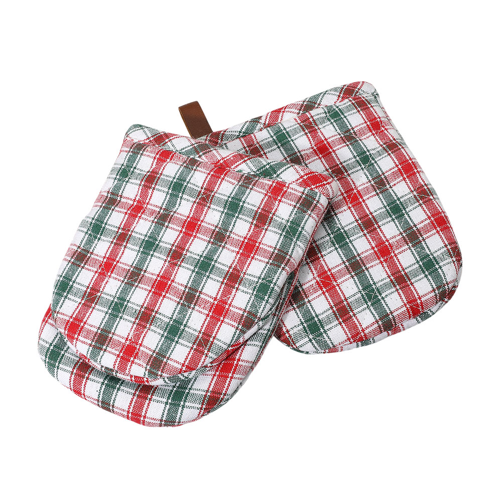 Details • Size : 7.5" X 5" • Material : 100% Cotton • Machine wash cold / Gentle cycle / Wash dark colors separately / Do not bleach line dry / Warm iron if necessary • Add festive charm and protection to your kitchen with this quilted checkered oven mitt set. Designed for comfort and heat resistance, it’s a perfect blend of practicality and seasonal style for baking and cooking needs. • Made In India