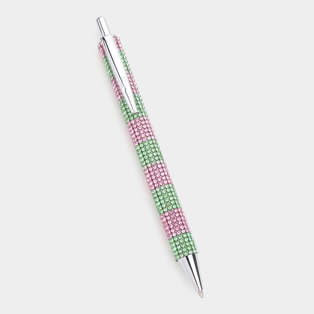• Sparkling rhinestone ballpoint pen with a twist-action design and metallic accents. A fun, eye-catching addition to your desk, perfect for gifting or everyday writing.