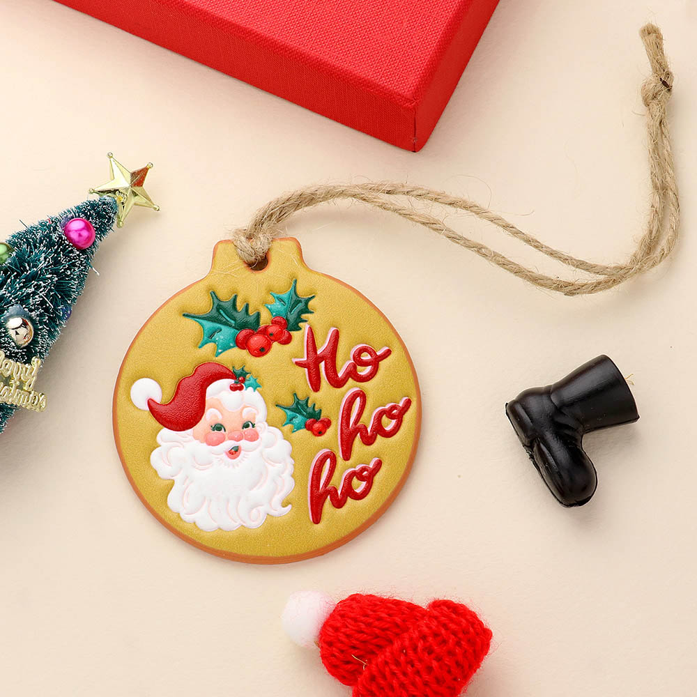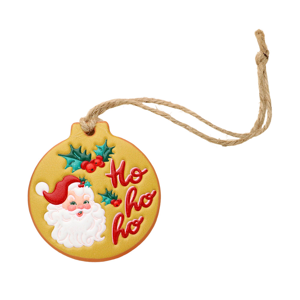 Faux Leather Embossed HO HO HO Santa Round Christmas Tree Ornament