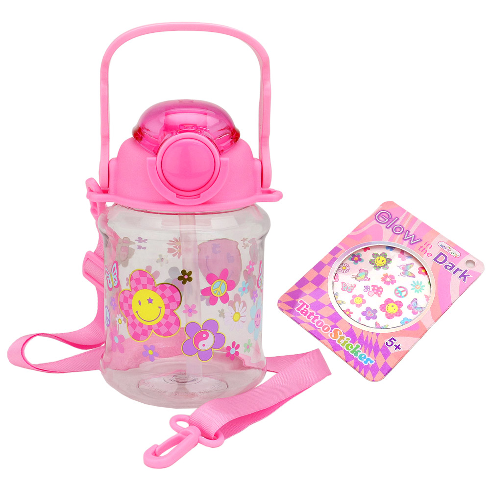 Details • Size : 4" X 7" (34fl.oz/1006ml) • 1 Glow in the Dark Tattoo Sticker Included • 1 Shoulder Strap Included • BPA Free • Do not microwave • Not intended for hot liquids • Clean water bottle with dish soap and warm water before use • Hand wash only