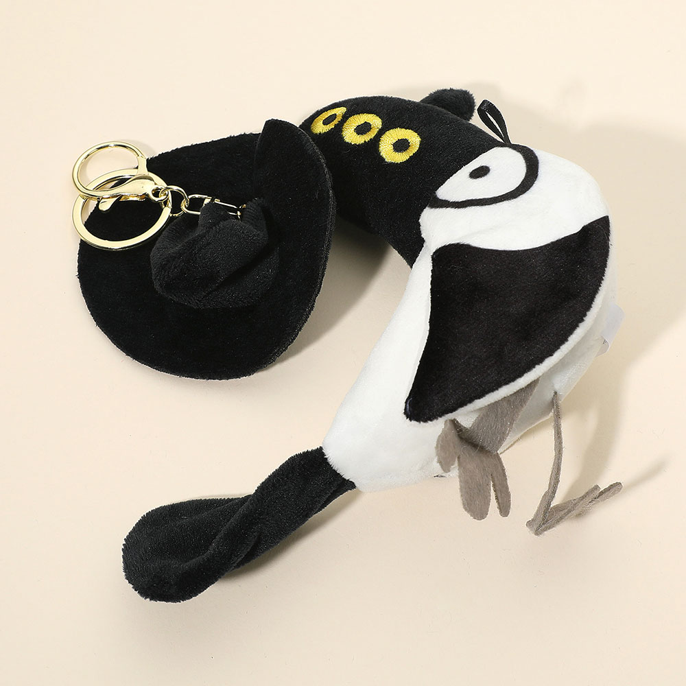Details • Size : 2.5" X 3.5" X 7.5" • Add a touch of dark whimsy to your style with this three-eyed crow plush keychain featuring a tall hat and unique design. Perfect for decorating bags or backpacks, this eye-catching accessory blends fantasy charm and playful gothic aesthetics in one adorable collectible. • K-Pop Demon Hunter Plush Toy – A collectible inspired by K-pop’s fearless energy and mystical flair. This Sussie the magpie spirit plush features bold details and expressive design, perfect for fans seeking something unique, stylish, and full of attitude for their collection.